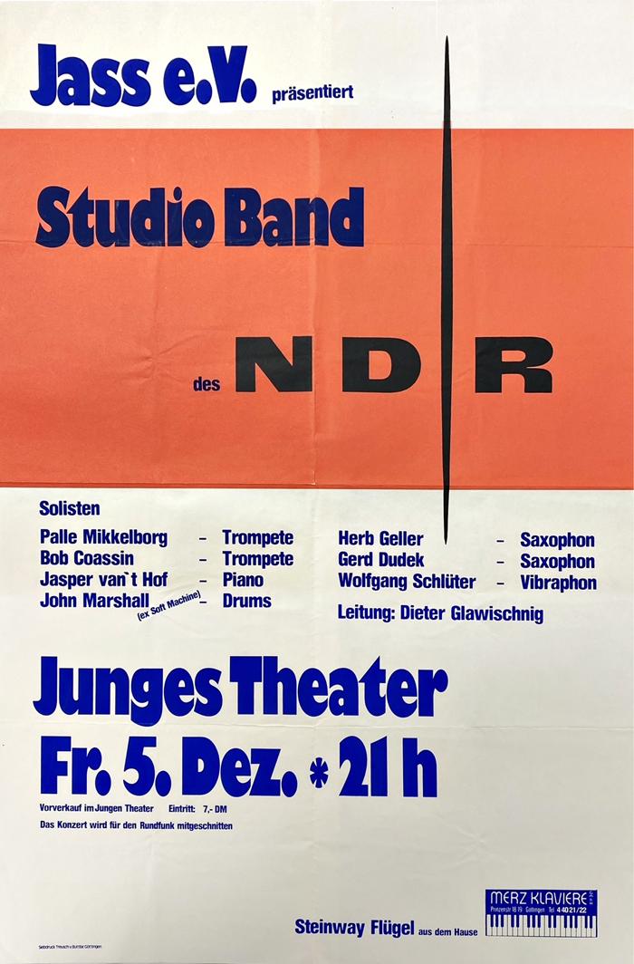 Wow, it could have been 1983 at the Junges Theater (Young Theatre) in Göttingen, with Dieter Glawischnig (ld, p), Palle Mikkelborg (tp), Benny Bailey was announced but unable to attend, Jiggs Whigham (tb), Herb Geller (as) … The NDR Bigband has often performed here, most recently at the Göttingen Jazz Festival under the direction of the British pianist and conductor Nikki Iles on November 7, 2025.